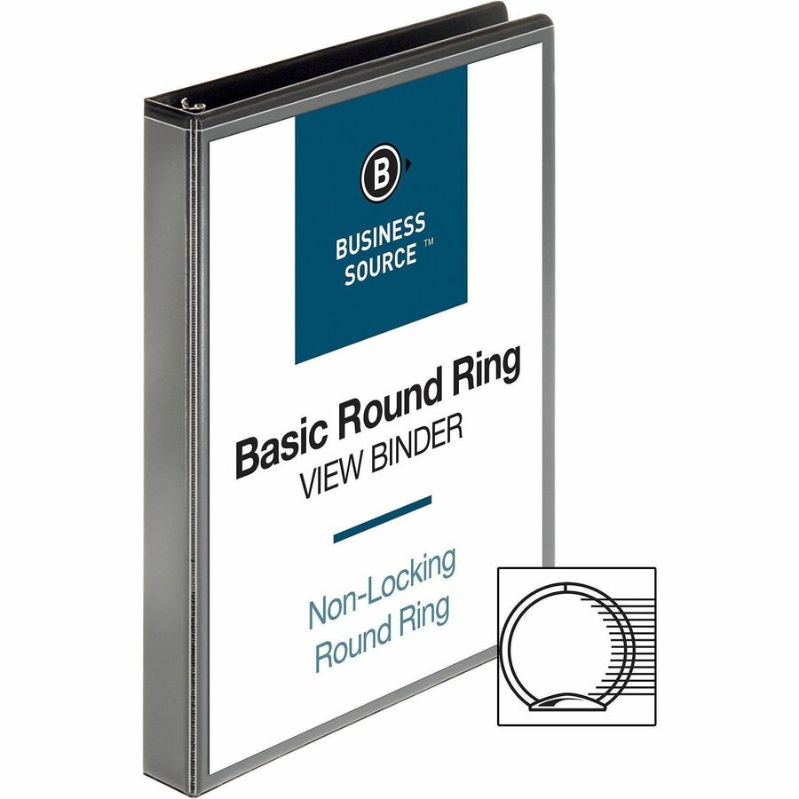 1" Binder Capacity - Letter - 8 1/2" x 11" Sheet Size - 225 Sheet Capacity - Fastener(s): Round Ring - Pocket(s): 2, Internal - Chipboard, Polypropylene - Black - Non-glare, Sturdy, Exposed Rivet, Durable, Clear Overlay, Gap-free Ring, Wrinkle-free, Non Locking Mechanism - 12 / Carton