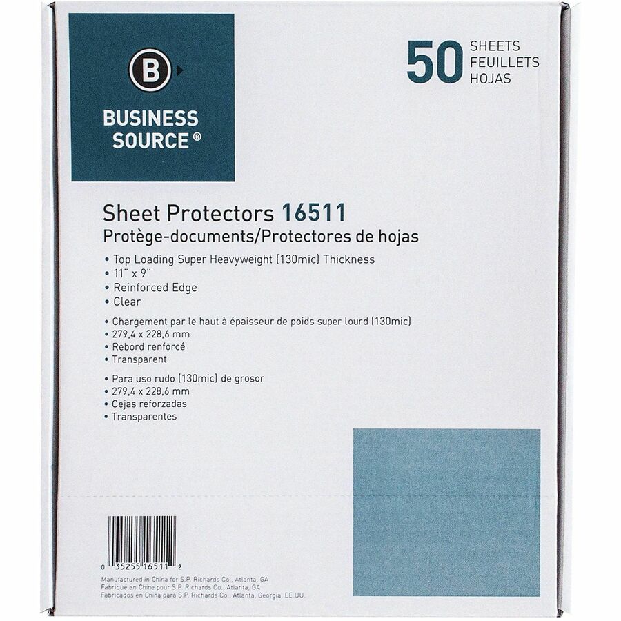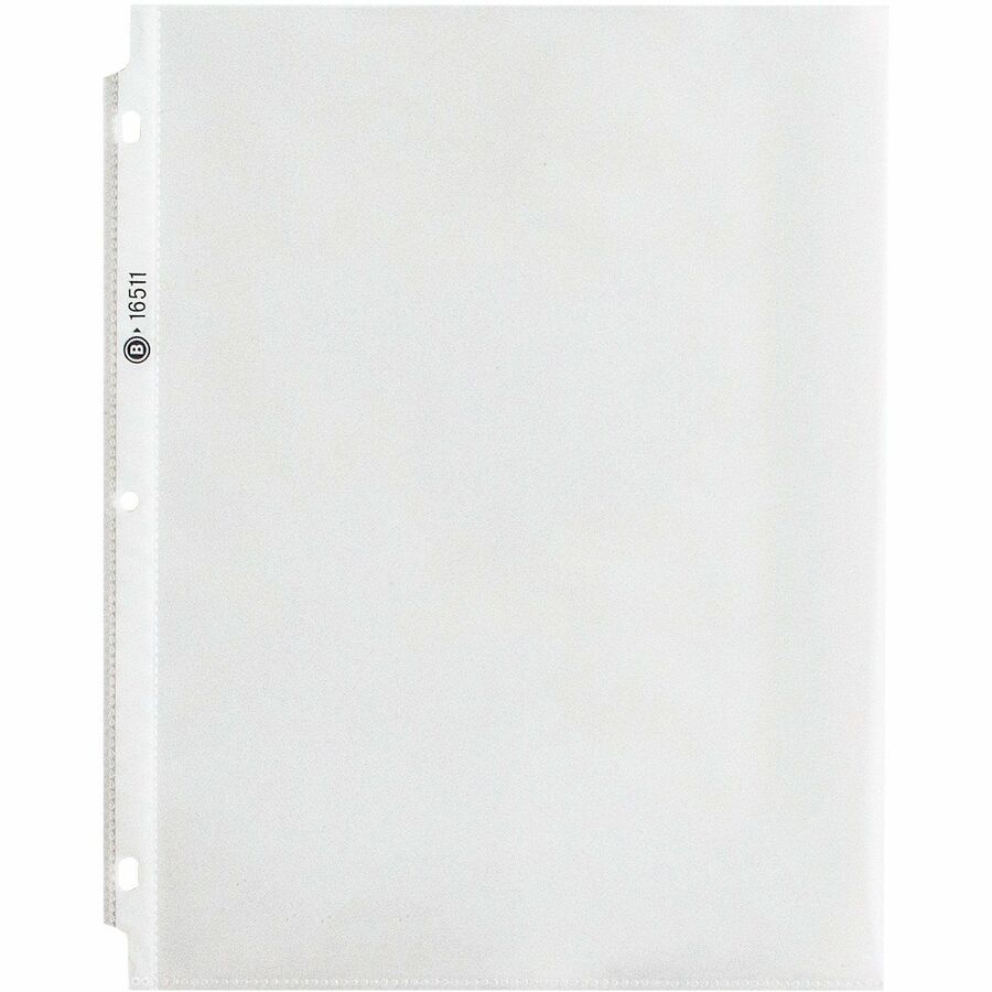 | Marketing Information | Durable, top-loading sheet protectors hold letter-size inserts without punching. Printed materials do not stick or lift off this specially formulated polypropylene material. Design features a reinforced strip at binding edge and three-hole punched sides. Die-cut corners on ring side allow super-heavyweight pages to turn freely. Oversized ring binders and indexes are sold separately. |