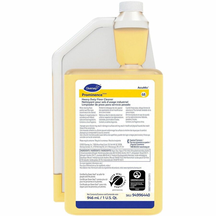Concentrate - 32 fl oz (1 quart) - Citrus Scent - Heavy Duty, Film-free, Rinse-free, pH Neutral, Dilutable - Yellow - 6 / Carton