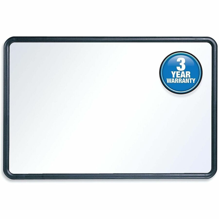 | Marketing Information | Delivering a smooth writing surface that is easy to clean, this durable dry-erase board is perfect for personal usage. Surface is melamine. Textured, black plastic frame with rounded corners fits in with modern office furnishings. Flexible mounting system secures board to wall horizontally or vertically. Dry-erase board includes a plastic frame and dry-erase marker. |