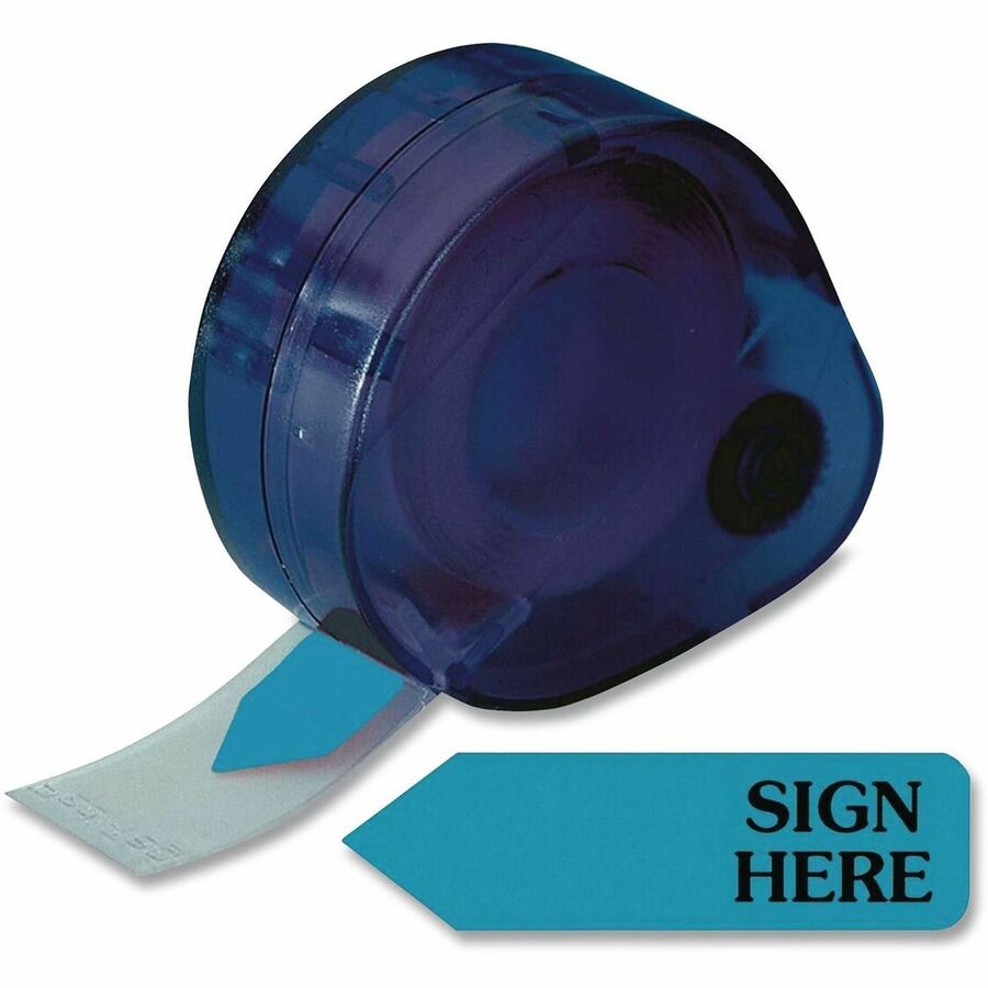 1 7/8" Flag/Note Width x 9/16" Flag/Note Length - Arrow - SIGN HERE - Blue - Removable, Self-adhesive - Dispenser Included - 120 / Pack