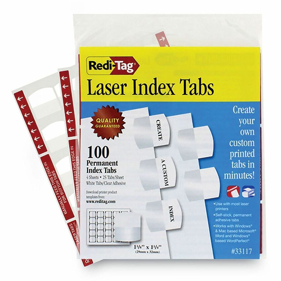 100 Blank Tab(s) - 1.25" Tab Height x 1.12" Tab Width - Self-adhesive, Permanent - White Tab(s) - Non-toxic - 100 / Pack