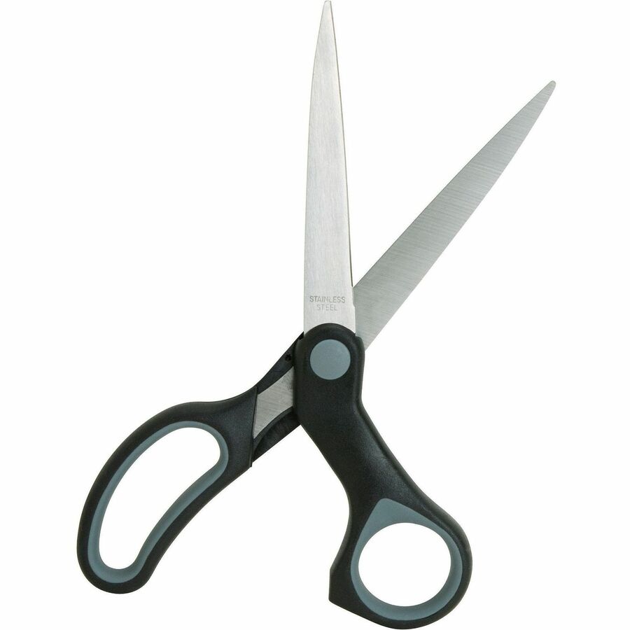 | Marketing Information | Straight scissors feature a rubberized grip for more comfort and control. Corrosion-resistant, stainless steel blades keep a sharp edge longer. Blades are finely ground for smooth, constant cutting. Scissors are great for everyday use in your home office. |