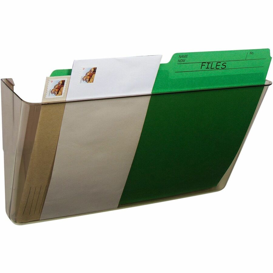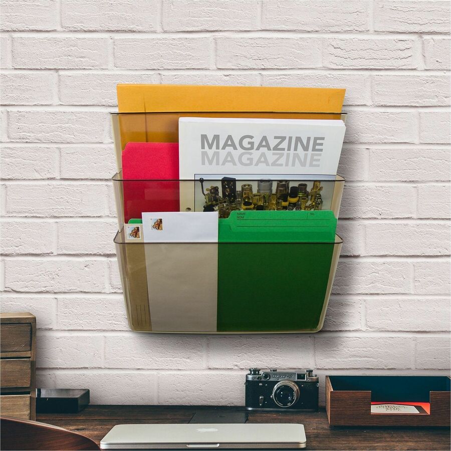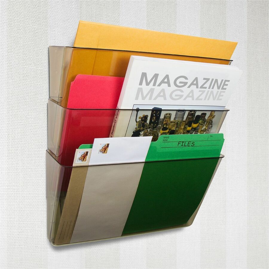 | Marketing Information | Maximize your home or office storage with this set of stacking wall pockets. Built with your convenience in mind, this set includes multiple types of mounting brackets so your files will always be within reach. The back wall ensures that no paper - big or small - will slip between the cracks to prevent you from losing important documents and files. Plastic material is free from PVC and BPA for safe, long-term use. Wall pockets are designed for use with letter-size items. |